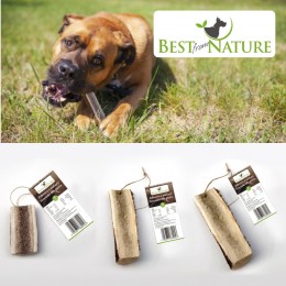 Gryzaki Best from Nature odpowiednie są dla psów wszystkich ras, nieodpowiednie dla szczeniąt i starszych psów. Dostępne są w 4 rozmiarach dopasowanych do wielkości psa: S (9 cm) , M (12 cm), L (15 cm) oraz XL (20 cm). W zależności od rasy i wielkości psa oraz z uwzględnieniem „siły szczęk” i skłonności do zabawy gryzakami proponujemy wersję „soft” i „hard”.