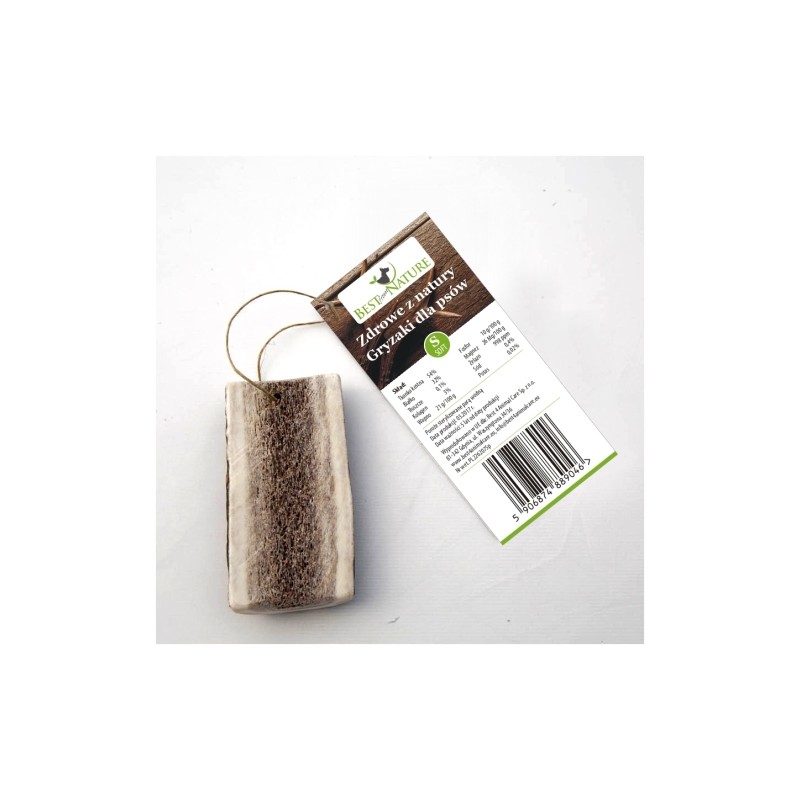 W 100% naturalny i zdrowy gryzak dla psów. Przygotowywany jest ręcznie z poroży jeleni - tzw. zrzutów czyli poroży jeleni gubionych w polskich lasach wiosną przez dziko żyjące jelenie.