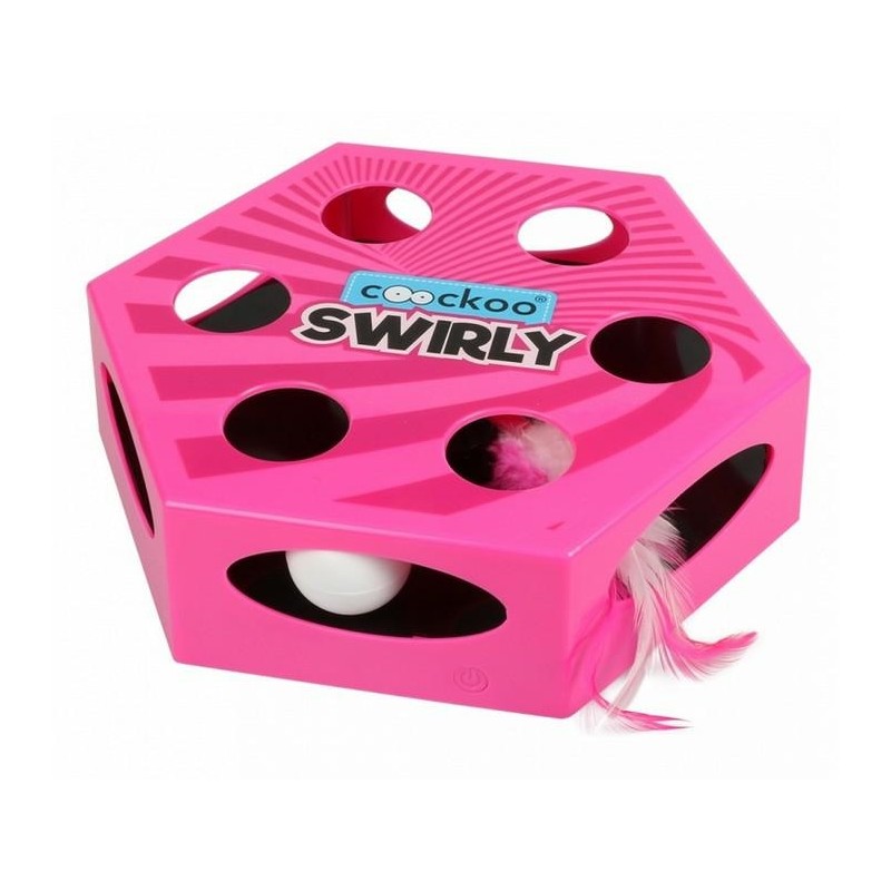 Swirly to interaktywna zabawka z obracającymi się piórami, stymuluje naturalny instynkt łowiecki Twojego kota i zapobiega nudzie. Sześciokątne pudełko i różne otwory stanowią wyjątkowo atrakcyjne wyzwanie dla kota.