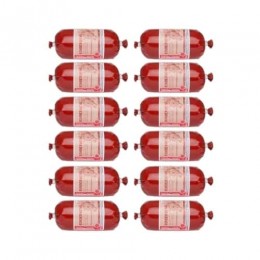 Skład: 80% wołowina i podroby (30% mięso wołowe, 25% żwacz wołowy, 15% płuca wołowe, 6% serce wołowe, 4% wątroba wołowa), 12% cukinia, mielone orzechy laskowe, mielone pestki dyni, olej słonecznikowy, sól morska, suszone skorupki jaj, glinka, ekstrakt z korzenia juki