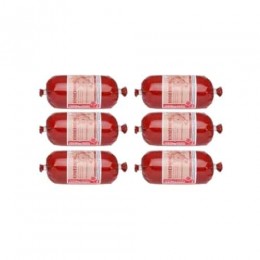 Skład: 80% wołowina i podroby (30% mięso wołowe, 25% żwacz wołowy, 15% płuca wołowe, 6% serce wołowe, 4% wątroba wołowa), 12% cukinia, mielone orzechy laskowe, mielone pestki dyni, olej słonecznikowy, sól morska, suszone skorupki jaj, glinka, ekstrakt z korzenia juki a