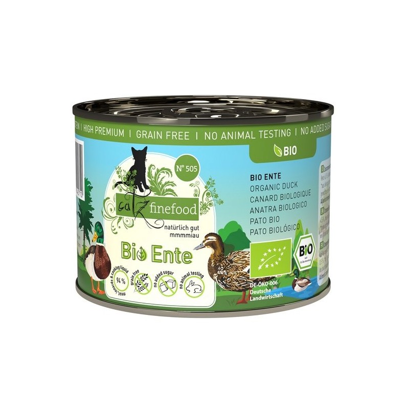 Zrównoważona receptura z gatunku Catz Finefood Bio jest idealnie dopasowana do potrzeb kotów. Wszystkie składniki są certyfikowane ekologicznie i wolne od GMO. Koty uwielbiają intensywny smak świeżo przetworzonego mięsa ekologicznego i ekologicznych podrobów. Nawet koty, które są wrażliwe na składniki odżywcze lub cierpią na alergie pokarmowe, mogą cieszyć się karmą Catz FineFood Bio, ponieważ każda odmiana zawiera tylko jedno zwierzęce źródło białka, a przejrzysta deklaracja ułatwia wybór odpowiedniego smaku dla Twojego zwierzęcia.