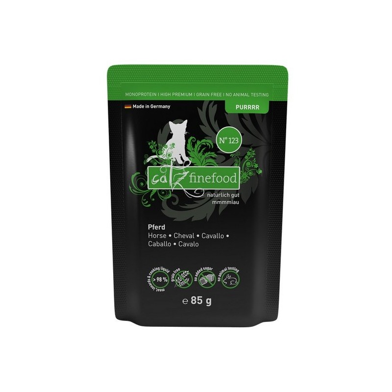 Konina 70% (mięśnie, wątroba, serce, płuco), bulion z koniny 28,8%, minerały 1%, olej z pestek dyni 0,2%