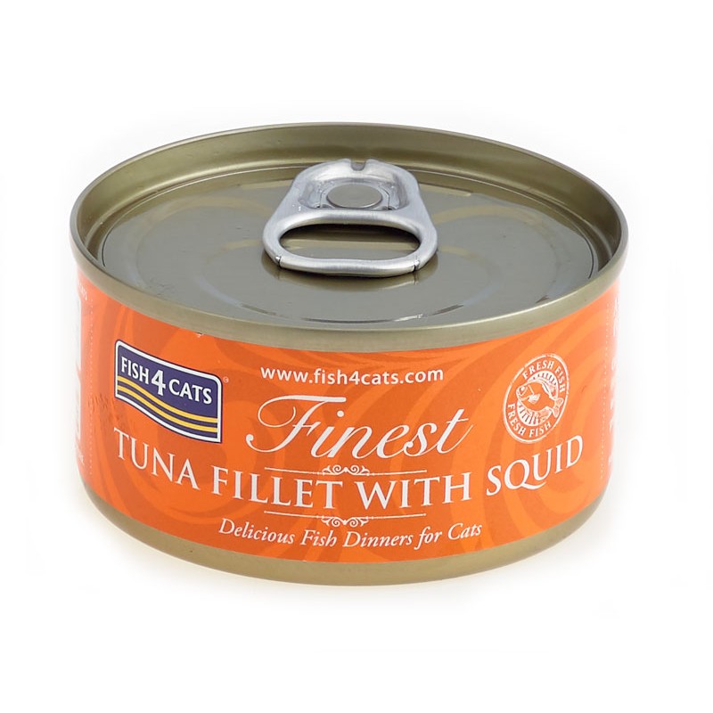 Fish4Cats Filety Tuńczyka z Kałamarnicami są przepyszną mokrą karmą rybną dla kotów.