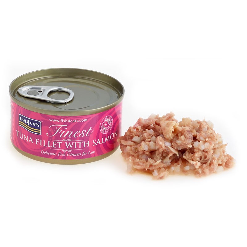 Fish4Cats Filety Tuńczyka z Łososiem są przepyszną mokrą karmą rybną dla kotów.