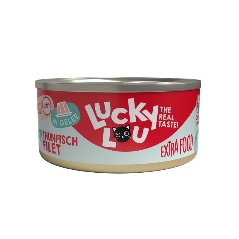 Koty lubią być rozpieszczane i kochają dodatki! Abyście mogli rozpieszczać swoje koty bez wyrzutów sumienia, stworzyliśmy linię Lucky Lou Extrafood. To pyszny soczysty filet z przyjaznymi kotom składnikami, dlatego w składzie nie znajdziesz zbóż, ryżu ani dodatku cukru.