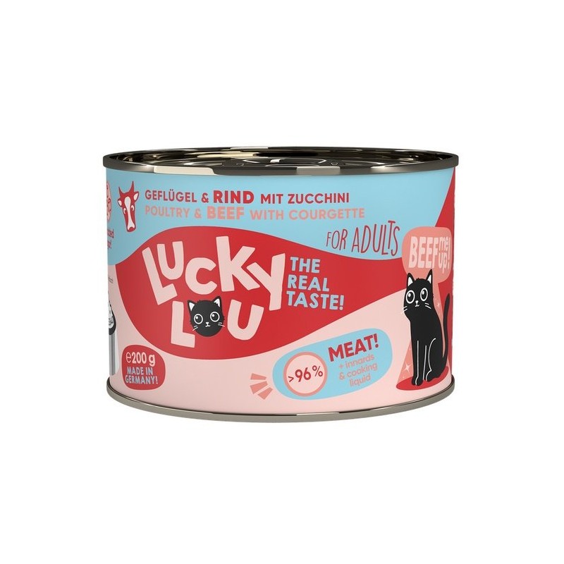 Gdzie indziej jest nudne standardowe jedzenie - Lucky Lou jest dostępne w 18 różnych odmianach smakowych w saszetkach 125 g oraz w puszkach 200 g i 400 g. Karma produkowana w Niemczech.