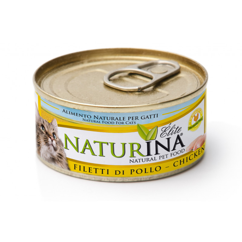 Mokra karma dla kotów Naturina to wysoce odżywcza, pełnowartościowa i doskonale zbilansowana dieta dla dorosłych kotów wszystkich ras i wielkości. Skomponowana w celu zaspokojenia naturalnych, biologicznych potrzeb żywieniowych mięsożerców. Wyprodukowana z najlepszych części kurczaka, gotowanego na parze i zakonserwowanego w przegotowanej wodzie (bez galaretki). Mokra karma Naturina posiada niespotykaną jakość i aż 75% filetu z kurczaka.