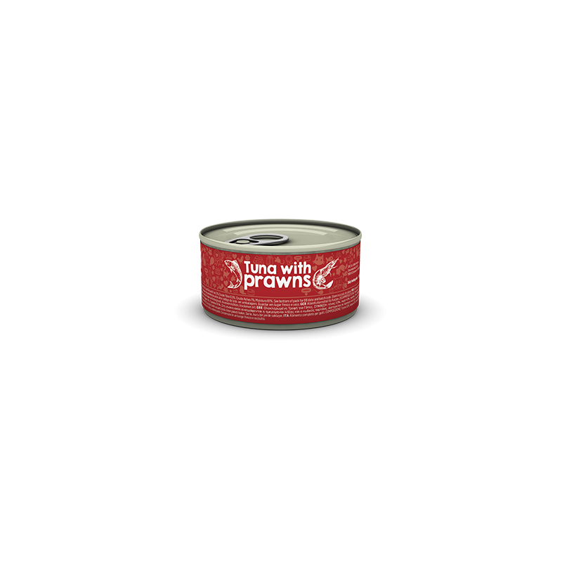 Składniki: Świeży tuńczyk 53%, Woda 42%, Świeże krewetki 5%, Dodatki / kg.: Witamina E: 26 mg