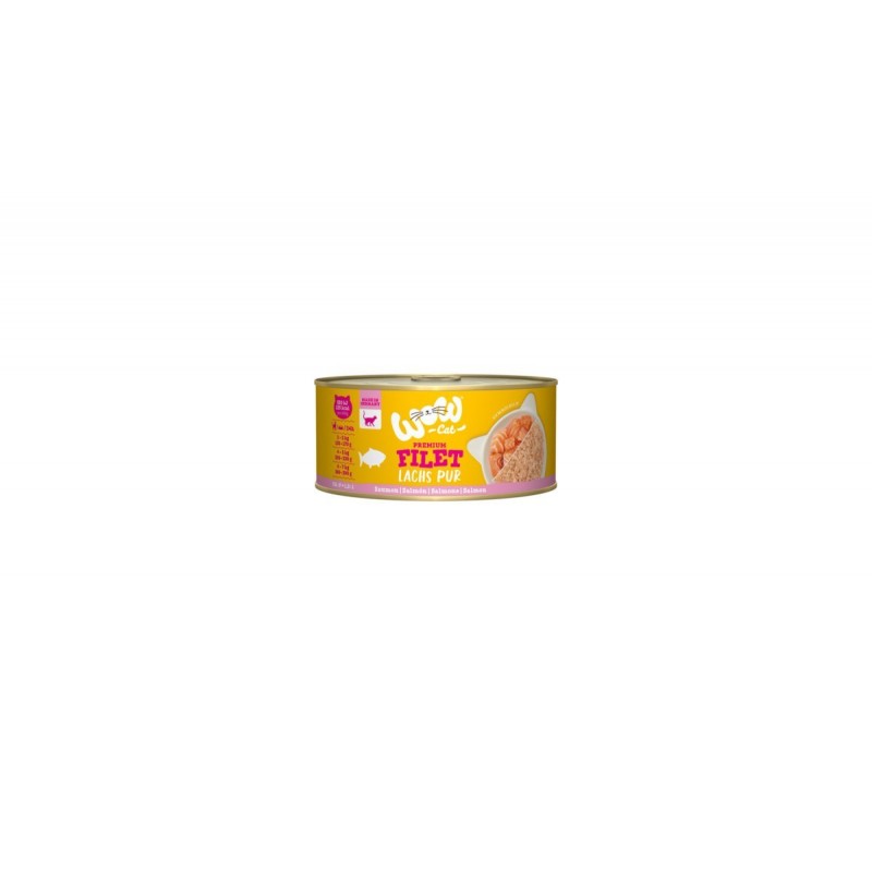 Dla miłośników ryb wśród kotów! I „miau” szybko zmienia się w „wow”! Nasze menu filetowe WOW CAT zawiera 60% smacznego filetu z łososia i 37% bulionu z łososia. Możesz być pewien, że Twój kot otrzymuje wszystkie ważne składniki odżywcze – ponieważ filety WOW CAT pełnoporcjowe karmy i tym samym pokrywają wszystkie potrzeby Twojego kota. Naturalnie bezzbożowe i starannie wyprodukowane w Niemczech.