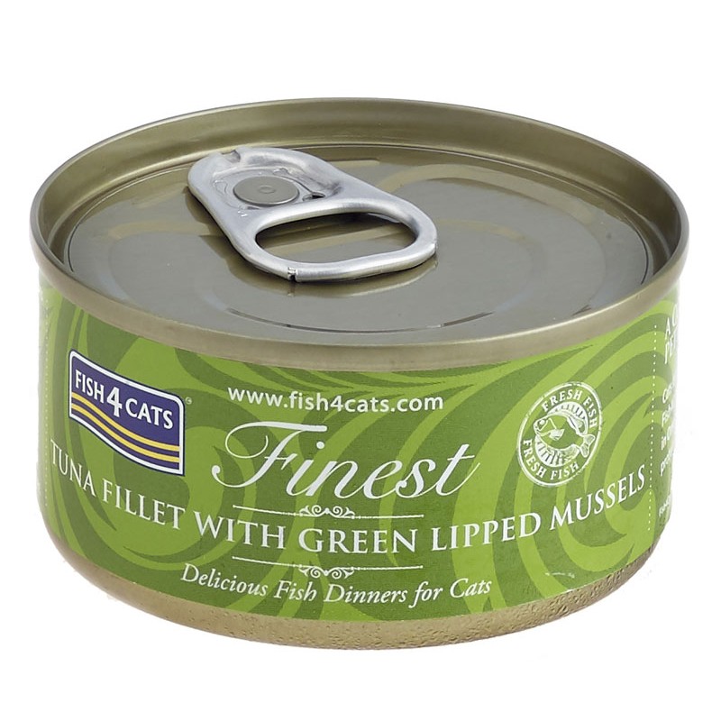 Fish4Cats Filety Tuńczyka z Omułkiem Zielonowargowym są przepyszną mokrą karmą rybną.