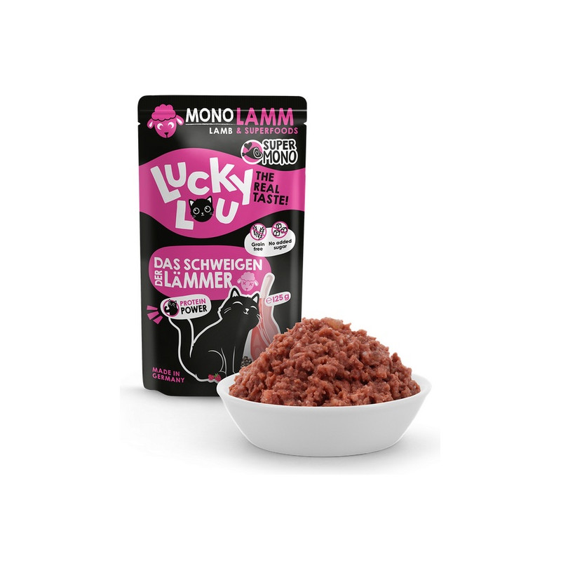 Lucky Lou Supermono jest karmą pełnoporcjową dla kotów. Nie zawiera zbóż ani cukru. Mokre, wysokiej jakości jednobiałkowe jedzenie, które przypadnie do gustu kocim smakoszom, również wrażliwym.