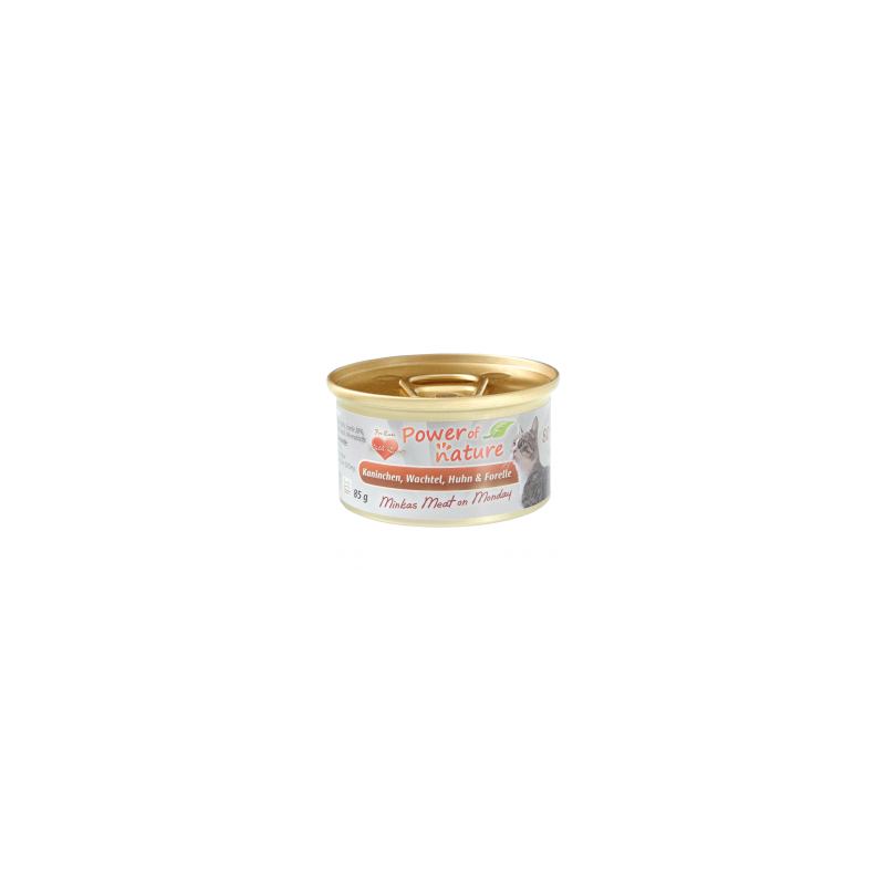 Pełnowartościowa karma klasy superpremium z soczystym mięsem królika, kurczaka, przepiórki i pstrągiem dla wszystkich kotów, nawet tych najbardziej wybrednych. Delikatnie gotowana na parze dla zachowania wszystkich składników odżywczych, wysoko przyswajalna.