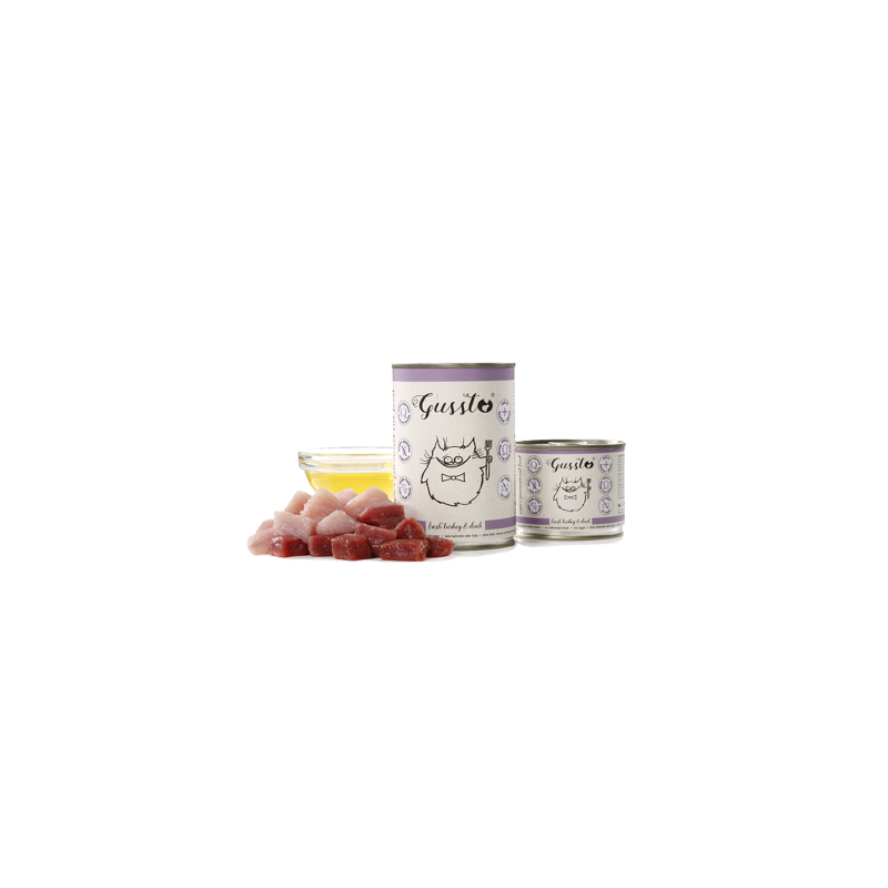 Pełnowartościowa, kompletna i znakomicie zbilansowana karma superpremium dla kotów. Produkowana jest w 100% z najwyższej jakości świeżego mięsa w wysokim standardzie odpowiadającym wymaganiom żywności dla ludzi. Gussto to esencja dobrego i zdrowego żywienia. Zawiera bardzo dużo mięsa idealnie odpowiadając specyficznym wymaganiom pokarmowym kotów. Jest to karma holistyczna, lekkostrawna i bardzo dobrze przyswajalna polecana również kotom o wrażliwym przewodzie pokarmowym. Stosowana także w dietach wykluczających przy alergiach pokarmowych. Znakomicie zrównoważony stosunek wapń/fosfor minimalizuje ryzyko chorób układu moczowego i nerek. Dodatkowo karma Gussto zawiera dużo niezbędnych witamin i minerałów jest bardzo bogata w Taurynę i Biotynę, a w jej skład wchodzi dobroczynny olej z ostropestu – bogaty w nienasycone kwasy tłuszczowe, który ma działanie przeciwzapalne, reguluje czynności trawienne i regeneracyjne wątroby, oraz wzmacnia system odpornościowy.