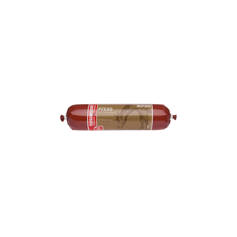 Skład: 90% mięso konia i podroby (50% mięso konia, 20% serce konia, 15% płuca konia, 15% wątroba konia), 8% ziemniaki, olej z krokosza barwierskiego, sproszkowane skorupki jaj