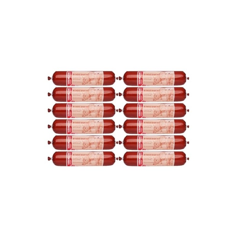 Skład: 80% wołowina i podroby (30% mięso wołowe, 25% żwacz wołowy, 15% płuca wołowe, 6% serce wołowe, 4% wątroba wołowa), 12% cukinia, mielone orzechy laskowe, mielone pestki dyni, olej słonecznikowy, sól morska, suszone skorupki jaj, glinka, ekstrakt z korzenia juki