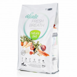 (Każdy wydany 10,00 zł = 1 punkt)Natura Diet Odontic to kompletna naturalna karma, stworzona specjalnie po to, aby utrzymać zęby dorosłych psów w czystości, niezależnie od rasy i wielkości pupila, dzięki mieszance probiotyków i olejków eterycznych z wybranych ziół. Podając Twojemu psu Natura Diet Odontic Twój pies będzie miał świeży i przyjemny oddech oraz pomoże zapobiegać powstawaniu kamienia nazębnego i ubytków, które mogą powodować inne karmy i przysmaki.