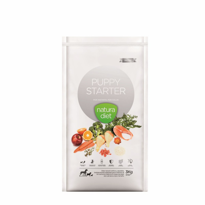 Karma Natura Diet Puppy Starter zawiera wysokiej jakości witaminy, minerały i białka dla optymalnego wzrostu. Ponadto olej z ryb który jest w składzie karmy przyczynia się do prawidłowego rozwoju wzroku i mózgu.