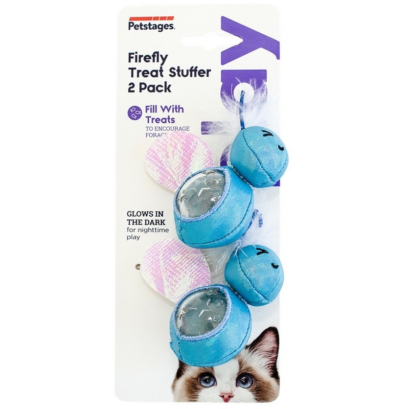 Firefly Treat Stuffer od Petstages to zabawka, która zwabi nawet najbardziej nieśmiałego kotka. Szeleszczące skrzydełka, piórka i brzuszek pełny przysmaków zachęcają koty w każdym wieku do zabawy. Wypróbuj ulubione smakołyki Twojego kota, aby wypełnić świetliki i nadać im dodatkowy grzechoczący dźwięk, który Twój ciekawski kot koniecznie będzie chciał zbadać! Po naświetleniu zabawki przed wieczornym szaleństwem uzyskasz fosforyzujący efekt, który spodoba się i Tobie i Twojemu kotu!