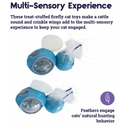 Świetliki oferują różnego rodzaju bodźce dzięki łaskoczącym piórkom, szeleszczącym skrzydełkom oraz grzechotaniu po napełnieniu przysmakami. Dodatkowo po naświetleniu fosforyzują w ciemności. Wszystko to zapewnia Twojemu kotu wielozmysłowe wrażenia i zaangażuje go na długi czas.