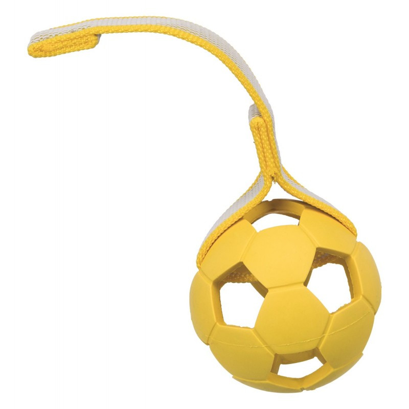 Piłka na pasku Sporting marki Trixie znakomicie się spełni podczas zabaw na wolnym powietrzu. Wygodny uchwyt dodatkowo ułatwia zabawę. Średnica 7 cm, długość 22 cm.