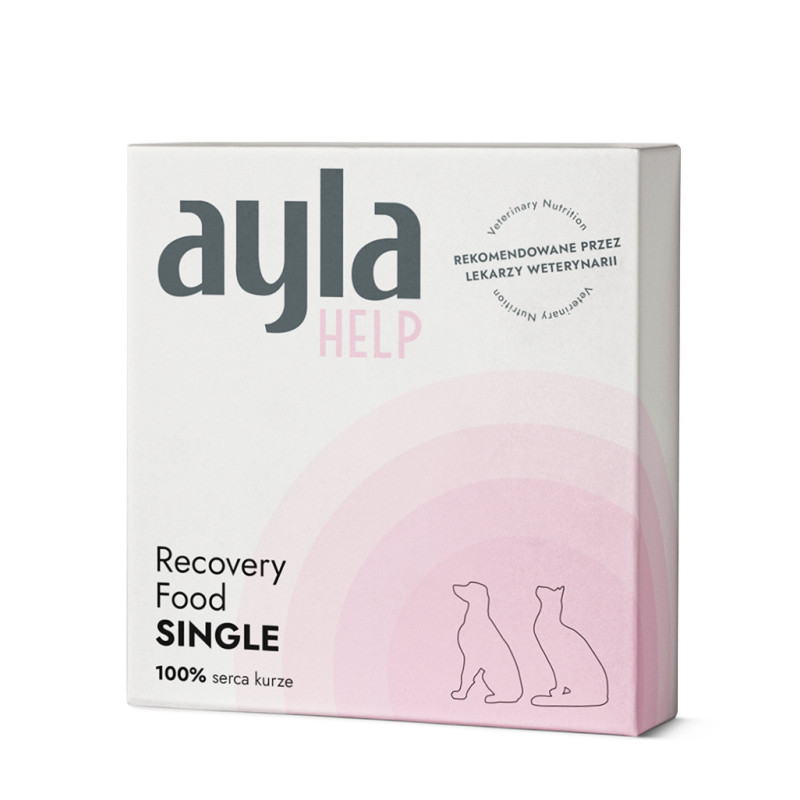 Monobiałkowa formuła z serc kurzych. Polecana na poprawę apetytu, przy rekonwalescencji lub okresach zwiększonej aktywności fizycznej. AYLA HELP można podawać w formie suchej jako dodatek do zbilansowanego posiłku lub w postaci rozrobionej z wodą.