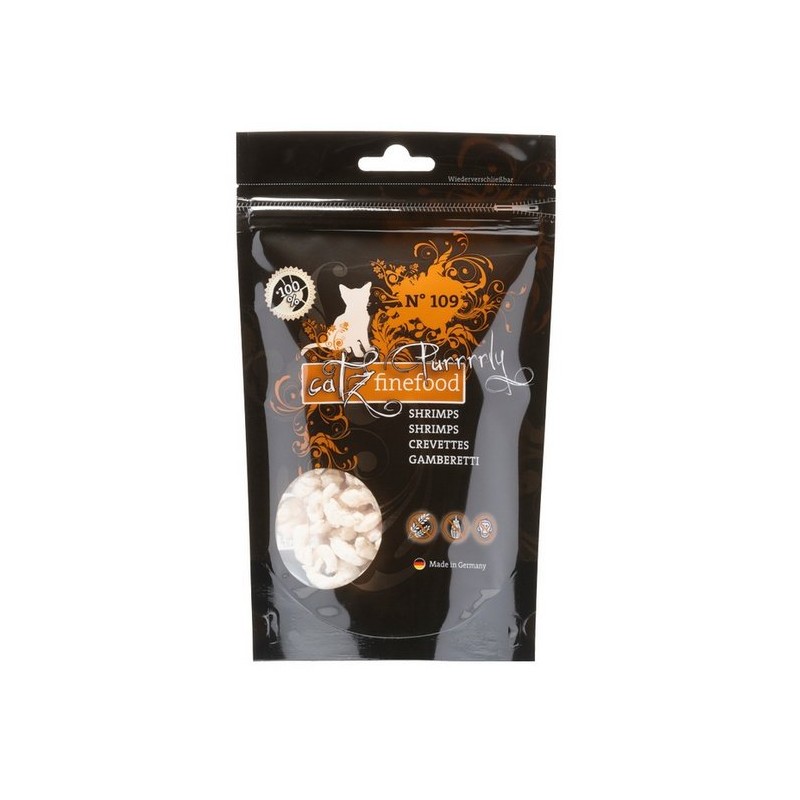 Catz Finefood Purrrrly to czyste, liofilizowane przysmaki dla kotów. Składają się w 100% z krewetek - całkowicie bez dodatków. Dlatego karmy Catz finefood Purrrrly są szczególnie odpowiednie dla kotów z alergiami pokarmowymi i specjalnymi potrzebami żywieniowymi. Nawet wybredne aksamitne łapy uwielbiają nasze czyste przekąski, ponieważ ich specjalny proces produkcji sprawia, że Catz finefood Purrrrly jest wyjątkowo smaczna!