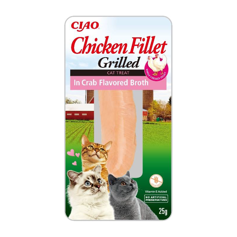 Przysmak dla kota – Inaba Ciao Grillowany Filet z Kurczaka w bulionie z kraba - ręcznie cięte, wyselekcjonowane kawałki, najlepszej jakości kurczaka z wolnego wybiegu.