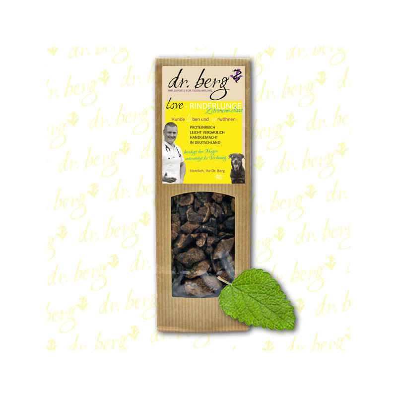 Dr.BERG przysmaki love dla psów – suszone wołowe płuca z melisą (50g)