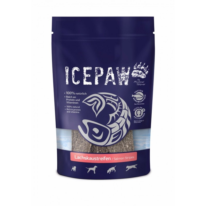 ICEPAW Lachskaustreifen - przysmaki z łososia dla psów 100% suszonej skóry łososia w postaci pasków. W 100% naturalne, bogate w witaminy i minerały oraz kwasy Omega-3.