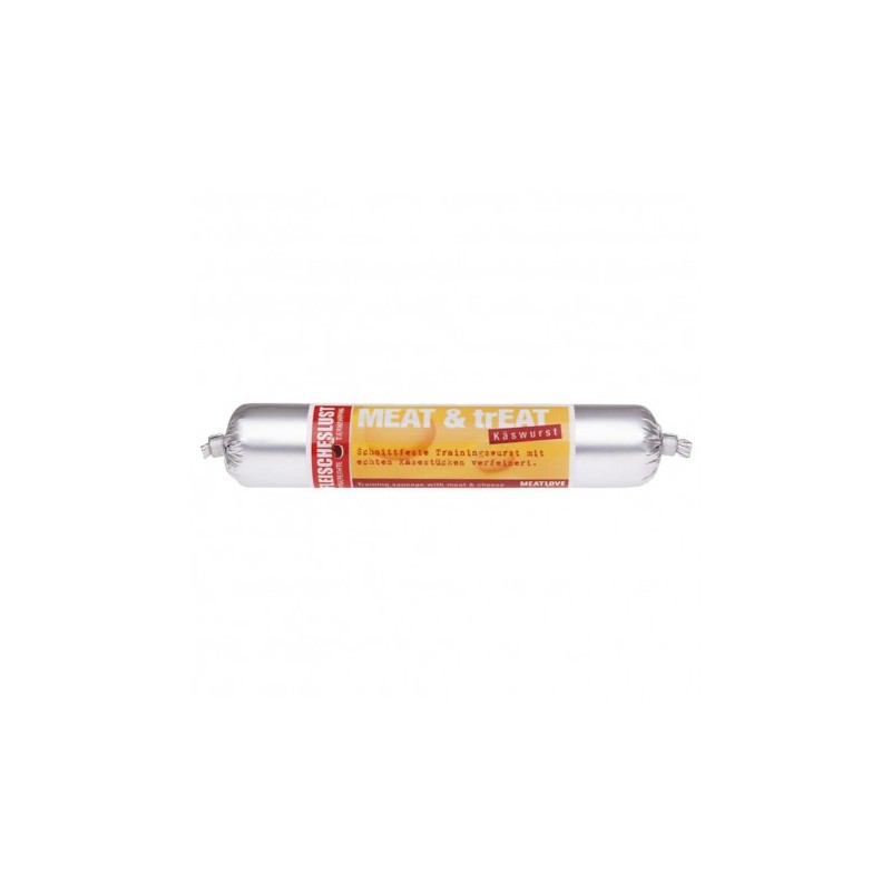 Najlepsze mięso indycze i wołowe, kawałki sera bez laktozy. Kiełbasa serowa MEAT & trEAT to idealna przekąska, a także najlepsza nagroda podczas szkolenia, treningów dla wszystkich psów, które uwielbiają smak sera.