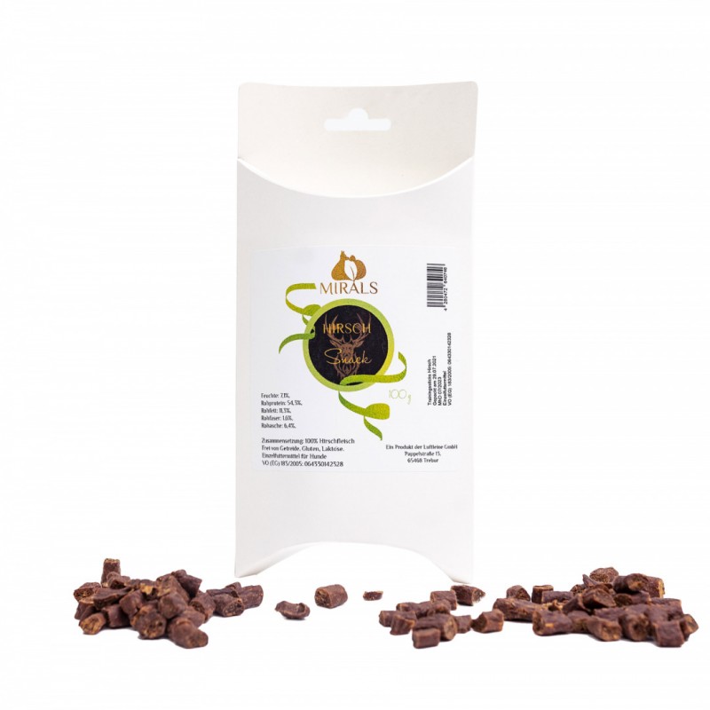 Przysmaki treningowe wyprodukowane w 100% z mięsa jelenia. Szczególnie polecane psim alergikom, ponieważ mięso jelenia bardzo rzadko wywołuje reakcje alergiczne.