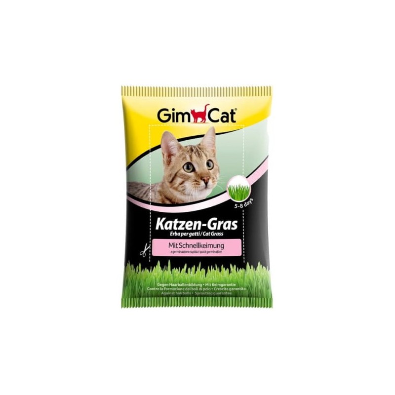 GimCat Katzen Grass to wyjątkowo miękka i niezwykle aromatyczna trawa dla kotów, zawierająca wiele cennych witamin i minerałów oraz składników odżywczych. Katzen grass jest to specjalna odmiana kociej trawy o miękkiej i gładkiej strukturze i świeżym zapachu łąki - ten wyjątkowy zapach uzyskany jest dzięki specjalnie wyselekcjonowanym surowcom pochodzącym z kontrolowanych szkółek polnych. Doskonale oczyszcza przewód pokarmowy kota, zapobiegając tworzeniu się kul włosowych kumulujących się w układzie trawiennym.
