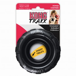 Kong Traxx wykonany został z najwyższej jakości naturalnego kauczuku dodatkowo wzmocnionego, dzięki czemu doskonale sprawdza się także u psów z bardzo silnym zgryzem. Jeżeli Wasz problem związany jest ze zbyt szybką destrukcją zabawek, czarna seria stworzona została właśnie dla was.